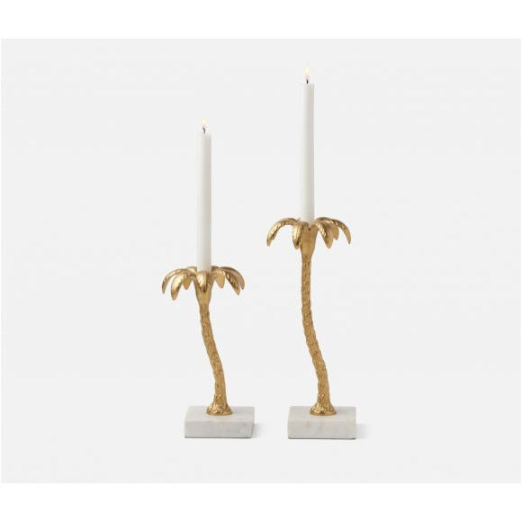 FERRAH, Gold/White, Large Candle Holder, Aluminum/Marble Pack of 2