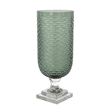 Glass Hurricane, Pale Blue with Clear Base