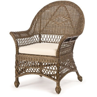 Hand made, harvested solid rattan chair. Recommended indoor or covered use for longer durability. **The lead time on this item is approximately 10 weeks** Hand made. Rattan. 31w x 30.5L x 40h. Arm Height, 26''Seat Height, 16.5''