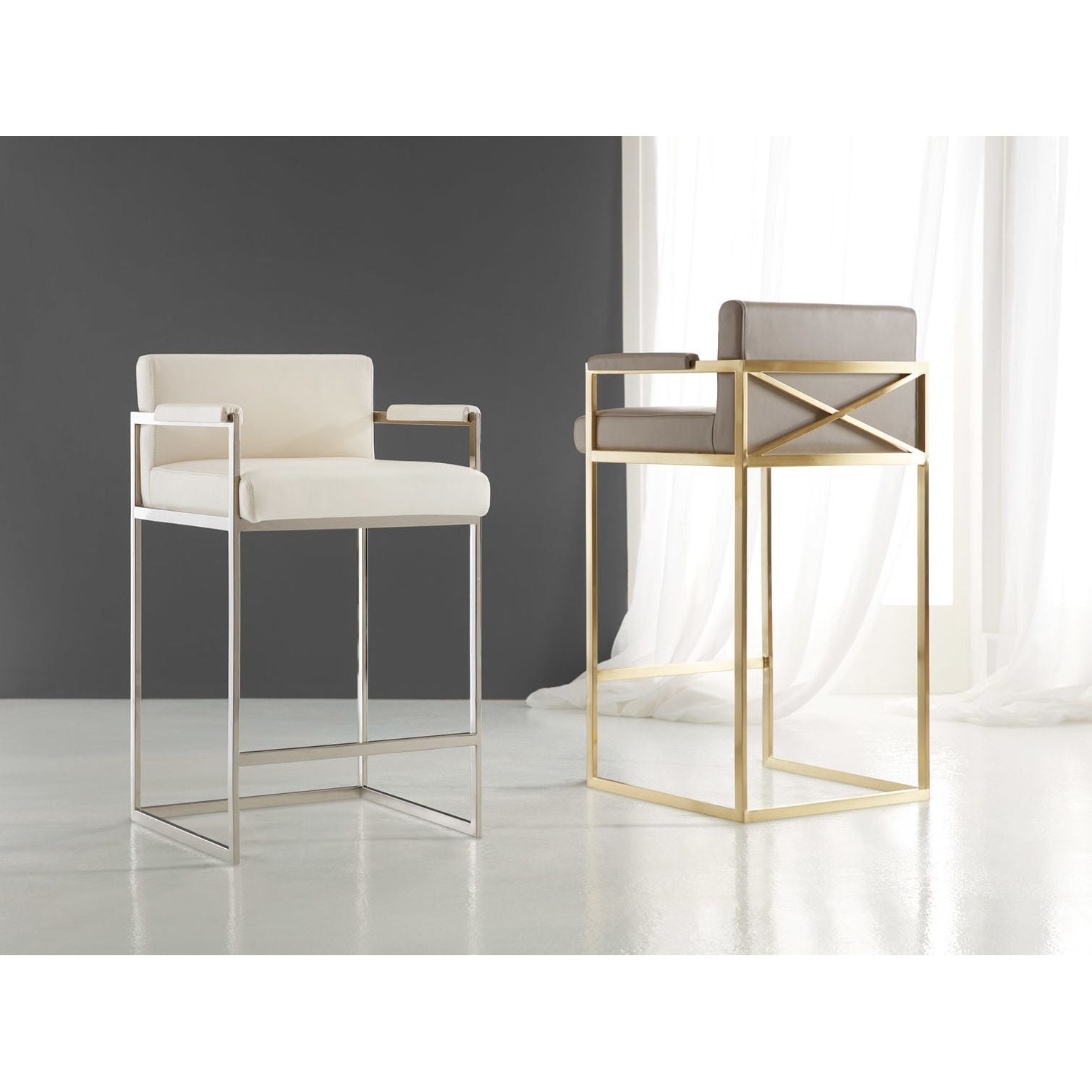 X Bar Stools-Stainless and Ivory